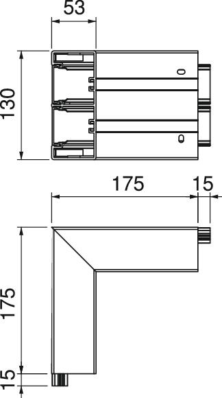 Descrizione prodottoAngolo esterno di 90° per deviazione di direzione di canali incasso apparecchi Rapid 45-2.