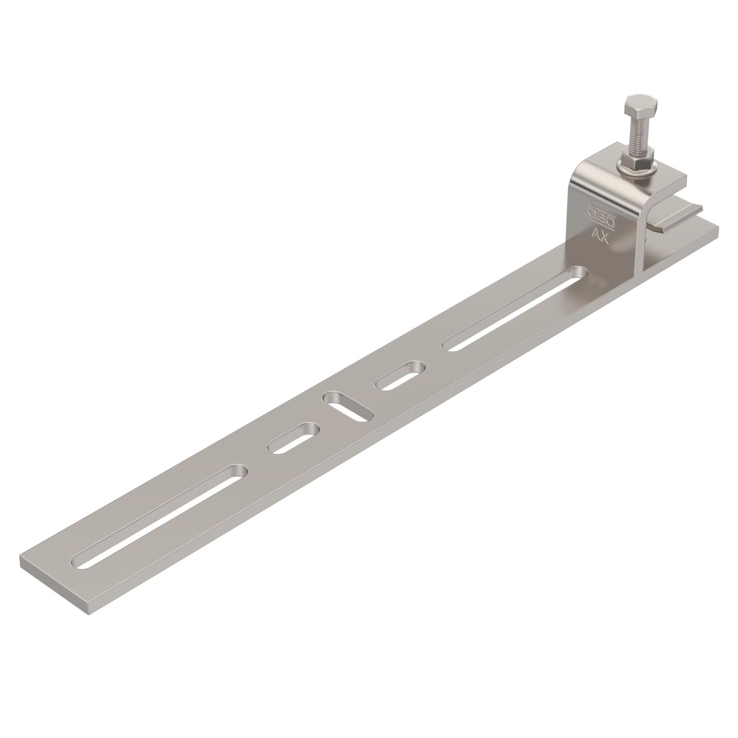 Descrizione prodottoBeam clamp for mounting light components on horizontal steel beams. Suitable, for example, for mesh cable trays and cable trays to 300 mm width or clips. The direction of the cable support system attached to the beam clamp is horizontal.