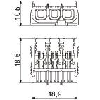 Adatto per conduttore flessibile sì Adatto per conduttore rigido sì Adatto per conduttori a più cavi sì Altezza 10,45 mm Colore Trasparente Con leve di azionamento sì Corrente nominale 32 A Diametro cavo max 2,3 mm Diametro cavo min. 0,5 mm Dimensione 19,6x19,9x10,5 Larghezza 19,9 mm Lunghezza 19,6 mm Numero dei punti di fissaggio 3 Numero di poli 1 Range di temperatura di esercizio max 85 °C Range di temperatura di esercizio min. -5 °C Sezione 3 x 0,2 - 4 mm² conduttori a filo singolo o multiplo mm² Sezione max del conduttore a più fili collegabile 4 mm² Sezione max del conduttore a un filo pieno collegabile 4 mm² Sezione min. del conduttore a più fili collegabile 0,2 mm² Sezione min. del conduttore a un filo pieno collegabile 0,2 mm² Sezione nominale max. 4 mm² Sezione nominale min. 0,2 mm² Sostanza isolante Thermoplast tagliafiamma secondo VDE 0471/DIN 695 parte 2-1, temperatura di prova 850 °C Tensione nominale 450 V Trasparente sì - Tutti i tipi