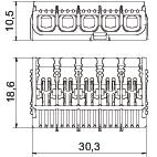 Adatto per conduttore flessibile sì Adatto per conduttore rigido sì Adatto per conduttori a più cavi sì Altezza 10,45 mm Colore Trasparente Con leve di azionamento sì Corrente nominale 32 A Diametro cavo max 2,3 mm Diametro cavo min. 0,5 mm Dimensione 19,6x31,3x10,5 Larghezza 31,3 mm Lunghezza 19,6 mm Numero dei punti di fissaggio 5 Numero di poli 1 Range di temperatura di esercizio max 85 °C Range di temperatura di esercizio min. -5 °C Sezione 5 x 0,2 - 4 mm² conduttori a filo singolo o multiplo mm² Sezione max del conduttore a più fili collegabile 4 mm² Sezione max del conduttore a un filo pieno collegabile 4 mm² Sezione min. del conduttore a più fili collegabile 0,2 mm² Sezione min. del conduttore a un filo pieno collegabile 0,2 mm² Sezione nominale max. 4 mm² Sezione nominale min. 0,2 mm² Sostanza isolante Thermoplast tagliafiamma secondo VDE 0471/DIN 695 parte 2-1, temperatura di prova 850 °C Tensione nominale 450 V Trasparente sì - Tutti i tipi