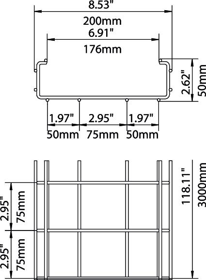 Descrizione prodottoPasserella grigliata con forma a C composta da fili in acciaio saldati con bordo di altezza pari a 50 mm.