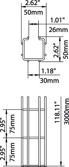 Descrizione prodottoPasserella grigliata forma a C composta da fili di acciaio saldati con bordo di altezza pari a 50 mm.