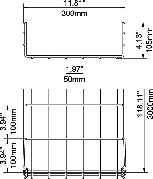 Descrizione prodottoPasserella grigliata ad innesto rapido, con bordo di altezza pari a 105 mm.