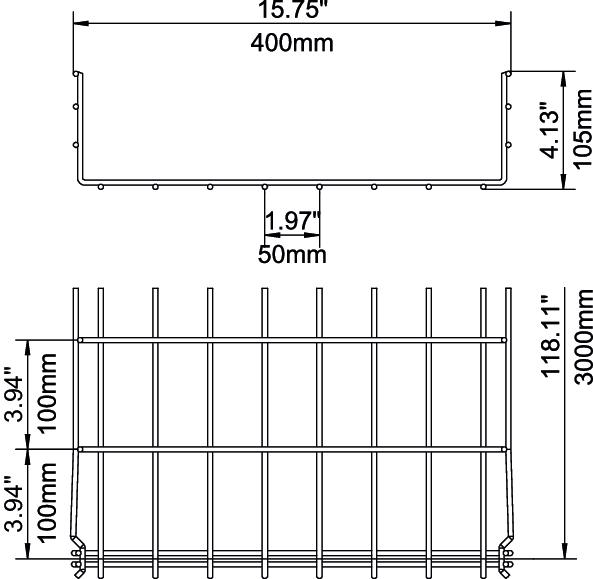 Descrizione prodottoPasserella grigliata ad innesto rapido, con bordo di altezza pari a 105 mm.