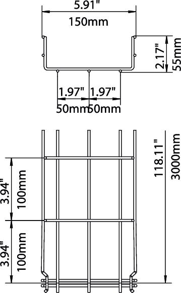 Per la passerella grigliata non sono necessari ulteriori componenti di collegamento, le due estremità vengono semplicemente inserite una nell'altra. La larghezza della maglia è di 50 x 100 mm (eccezione GRM 55/50 = 20 x 100 mm).