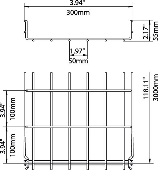 Per la passerella grigliata non sono necessari ulteriori componenti di collegamento in quanto vengono semplicemente inserite l'una nell'altra. La larghezza della maglia è di 50 x 100 mm (eccezione GRM 55/50 = 20 x 100 mm).