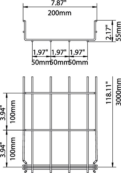 Per la passerella grigliata non sono necessari ulteriori componenti di collegamento in quanto vengono semplicemente inserite l'una nell'altra. La larghezza della maglia è di 50 x 100 mm (eccezione GRM 55/50 = 20 x 100 mm).