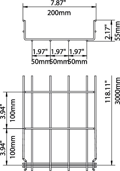 Per la passerella grigliata non sono necessari ulteriori componenti di collegamento, le due estremità vengono semplicemente inserite l'una nell'altra. La larghezza della maglia è di 50 x 100 mm (eccezione GRM 55/50 = 20 x 100 mm).