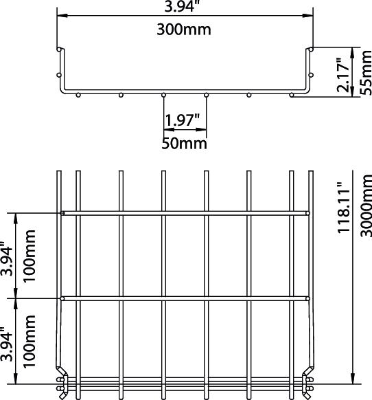 Per la passerella grigliata non sono necessari ulteriori componenti di collegamento, le due estremità vengono semplicemente inserite l'una nell'altra. La larghezza della maglia è di 50 x 100 mm (eccezione GRM 55/50 = 20 x 100 mm).