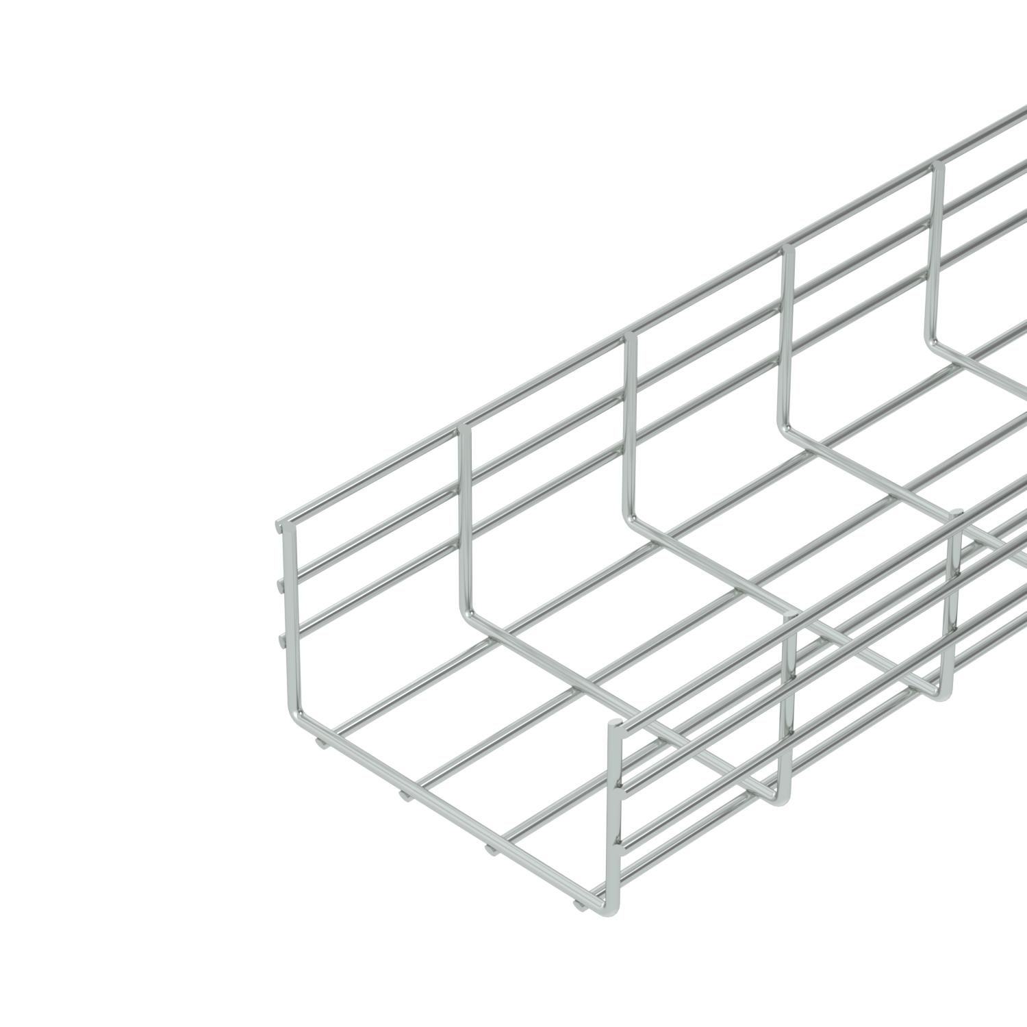 Descrizione prodottoPasserella grigliata composta da fili in acciaio saldati a punto con bordo di altezza pari a 105 mm.