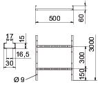 Descrizione prodottoPasserella a travesini con longherone forato, con bordo di altezza pari a 60 mm, pioli del profilato a C rivettati e aperti verso l'alto (versione VS).