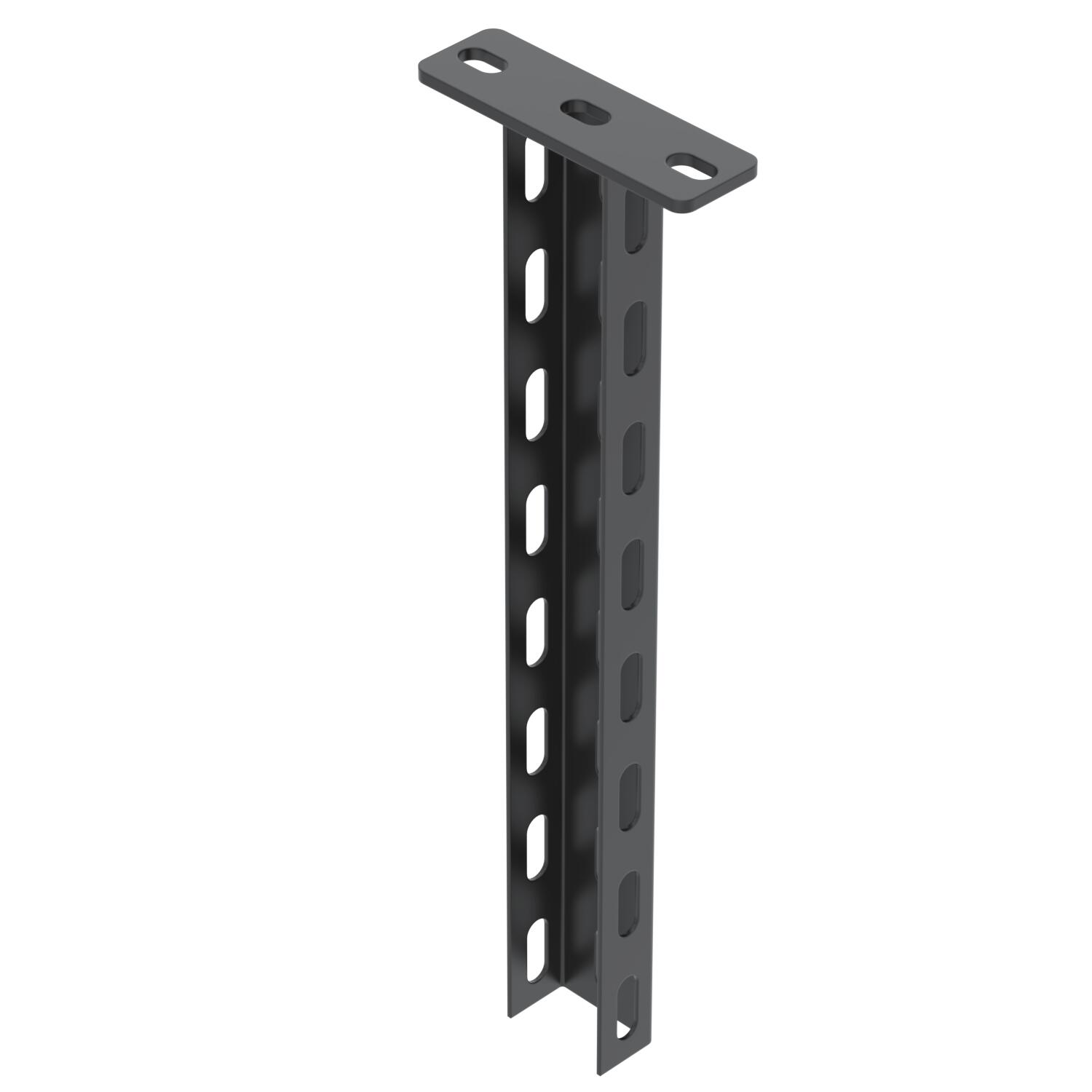 Descrizione prodottoProfilato di sospensione (profilato a U), dimensione 50 x 30 mm, con supporto a soffitto saldato. Per il fissaggio a soffitti in calcestruzzo orizzontali e supporti in acciaio. Verniciatura a polvere in nero intenso (RAL 9005). Nel caso si utilizzino mensole di lunghezza 400 millimetri o oltre oppure si montino le mensole alla fine del supporto di sospensione si consiglia di utilizzare il distanziatore, tipo DSK 25.