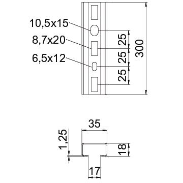 Acciaio inossidabile, decapato no Altezza 18 mm Colore nero; RAL 9005 Con dentatura no Con foratura sì Dimensione 300x35x18 Distanza da centro foro 25 mm Forma del profilato Profilato a C Impronta CO2 (GWP) dalla culla al cancello 0,5703 kg CO2e / 1 Pezzo Larghezza 35 mm Larghezza asola 17 mm Lunghezza 300 mm Mantenimento funzionale sì Materiale Acciaio Separabile no Spessore materiale 1,25 mm Super- ficie PES135 - Poliestere Tipo della foratura Forato sul retro Valore statico ly 0,41 cm⁴ Valore statico lz 1,81 cm⁴ Valore statico Wy 0,41 cm³ Valore statico Wz 1,03 cm³ Versione Profilo semplice - Tutti i tipi