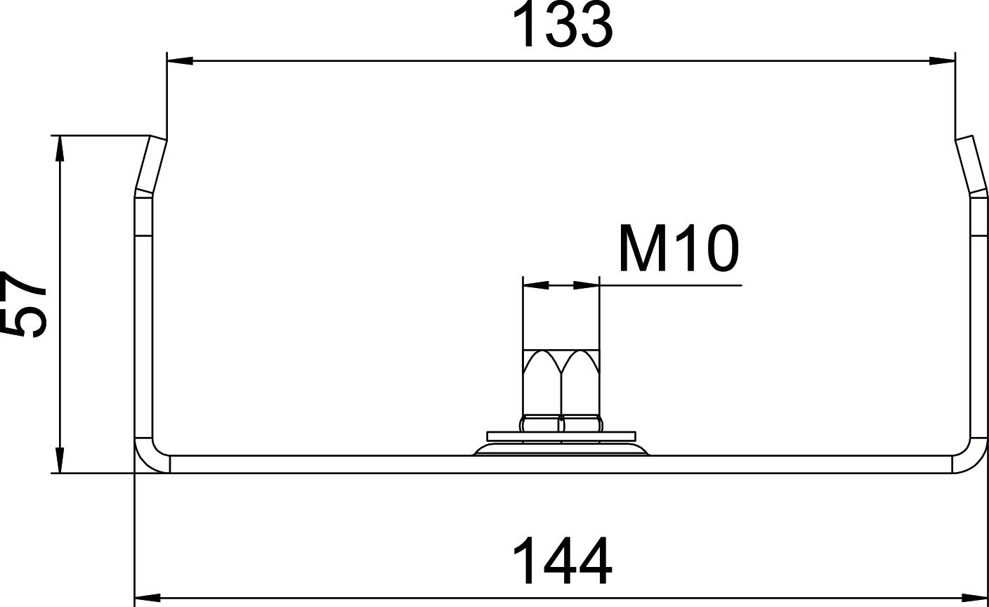 Dispone di un manicotto filettato M10 girevole. Durante la disposizione dei cavi fare attenzione ad una ripartizione equa del carico (evitare disposizioni sbilanciate). Le larghezze 100, 150 e 200 mm hanno asolature del fondo aggiuntive per consentire di avvitare i fissaggi centrali sul fondo della passerella, quando utilizzato per mantenimento funzionale secondo DIN 4102 Parte 12.