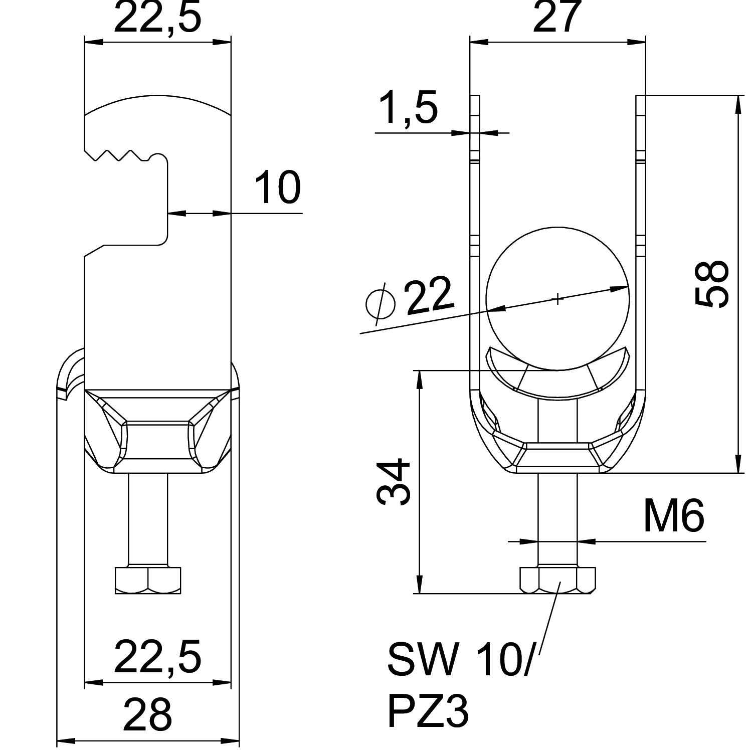 Aggiunta materiale Acciaio inossidabile Aggiunta superficie non trattato Altezza 58 mm Capacità D max 22 mm Capacità D min. 16 mm Con controcoppa no Con coppa in metallo sì Dimensione H 58 mm Dimensione 16-22mm Dimensione A 22,5 mm Dimensione B 27 mm Dimensione C 28 mm Dimensione G (mm) M6 Dimensione L 34 mm Dimensione t 1,5 mm Filettatura M6 Impronta CO2 (GWP) dalla culla al cancello 0,3254 kg CO2e / 1 Pezzo Larghezza 27 mm Larghezza asola 10 mm Lunghezza 22,5 mm Lunghezza esterna 28 mm Materiale Acciaio, INOX 1.4301 Materiale della coppa acciaio inox Max. Coppia di serraggio 3 Nm Modalità di montaggio profilo piatto Numero dei cavi/tubi 1 per diametro tubo max 22 mm per diametro tubo min. 16 mm Priva di alogeni sì Qualità del materiale della coppa Acciao inox 304 (1.4301) Spessore lamiera 1,5 mm Super- ficie non trattato, ulteriore trattamento - Tutti i tipi