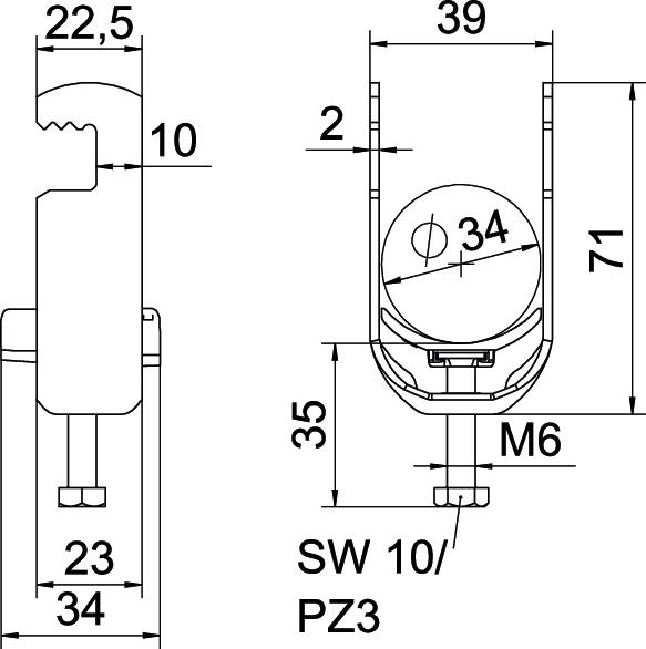 Aggiunta materiale Acciaio Aggiunta superficie zincato a caldo Altezza 71 mm Capacità D max 34 mm Capacità D min. 28 mm Con controcoppa no Con coppa in plastica sì Dimensione H 71 mm Dimensione 28-34mm Dimensione A 22,5 mm Dimensione B 39 mm Dimensione C 34 mm Dimensione G (mm) M6 Dimensione L 35 mm Dimensione t 2 mm Filettatura M6 Impronta CO2 (GWP) dalla culla al cancello 0,1575 kg CO₂e / 1 Pezzo Larghezza 39 mm Larghezza asola 10 mm Lunghezza 22,5 mm Lunghezza esterna 34 mm Materiale Acciaio Materiale della coppa Plastica Max. Coppia di serraggio 3 Nm Modalità di montaggio profilo piatto Numero dei cavi/tubi 1 per diametro tubo max 34 mm per diametro tubo min. 28 mm Priva di alogeni sì Qualità del materiale della coppa Polipropilene Spessore lamiera 2 mm Super- ficie zincato a caldo per immersione - Tutti i tipi