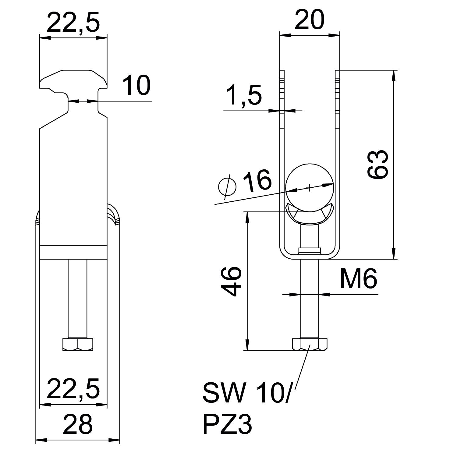 Aggiunta materiale Acciaio inossidabile Aggiunta superficie non trattato Altezza 63 mm Capacità D max 16 mm Capacità D min. 12 mm Con controcoppa no Con coppa in metallo sì Con coppa in plastica no Dimensione H 63 mm Dimensione 12-16mm Dimensione A 22,5 mm Dimensione B 20 mm Dimensione C 28 mm Dimensione G (mm) M6 Dimensione L 46 mm Dimensione t 1,5 mm Filettatura M6 Impronta CO2 (GWP) dalla culla al cancello 0,3414 kg CO₂e / 1 Pezzo Larghezza 20 mm Larghezza asola 10 mm Lunghezza 22,5 mm Lunghezza esterna 28 mm Materiale Acciaio, INOX 1.4301 Materiale della coppa acciaio inox Max. Coppia di serraggio 3 Nm Modalità di montaggio Profilati Numero dei cavi/tubi 2 per diametro tubo max 16 mm per diametro tubo min. 12 mm per profilato portacavi con apertura asola (con intervallo) max 17 mm per profilato portacavi con apertura asola (con intervallo) min. 16 mm Priva di alogeni sì Qualità del materiale della coppa Acciao inox 304 (1.4301) Spessore lamiera 1,5 mm Super- ficie non trattato, ulteriore trattamento - Tutti i tipi