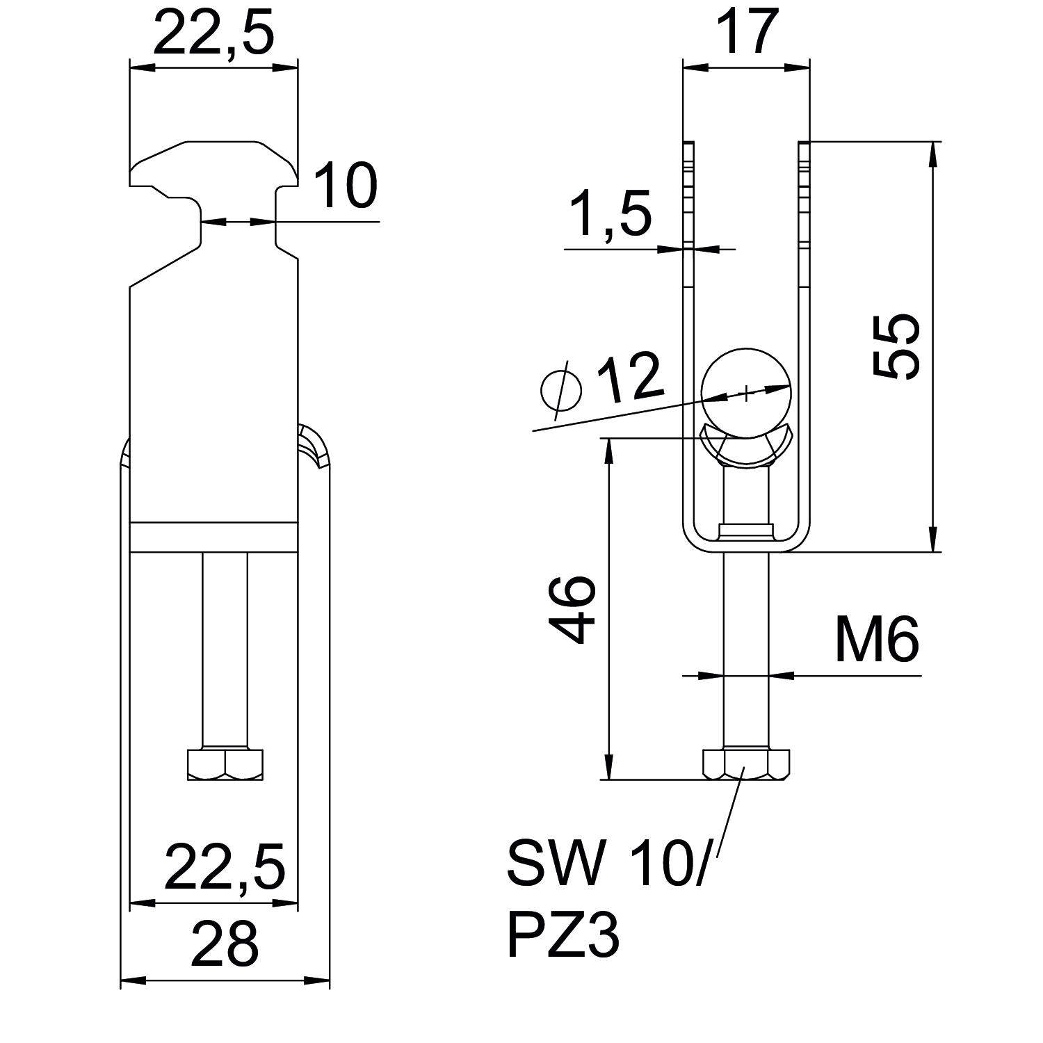 Aggiunta materiale Acciaio inossidabile Aggiunta superficie non trattato Altezza 55 mm Capacità D max 12 mm Capacità D min. 8 mm Con controcoppa no Con coppa in metallo sì Con coppa in plastica no Dimensione H 55 mm Dimensione 08-12mm Dimensione A 22,5 mm Dimensione B 17 mm Dimensione C 28 mm Dimensione G (mm) M6 Dimensione L 46 mm Dimensione t 1,5 mm Filettatura M6 Impronta CO2 (GWP) dalla culla al cancello 0,2958 kg CO₂e / 1 Pezzo Larghezza 17 mm Larghezza asola 10 mm Lunghezza 22,5 mm Lunghezza esterna 28 mm Materiale Acciaio, INOX 1.4301 Materiale della coppa acciaio inox Max. Coppia di serraggio 3 Nm Modalità di montaggio Profilati Numero dei cavi/tubi 2 per diametro tubo max 12 mm per diametro tubo min. 8 mm per profilato portacavi con apertura asola (con intervallo) max 17 mm per profilato portacavi con apertura asola (con intervallo) min. 16 mm Priva di alogeni sì Qualità del materiale della coppa Acciao inox 304 (1.4301) Spessore lamiera 1,5 mm Super- ficie non trattato, ulteriore trattamento - Tutti i tipi