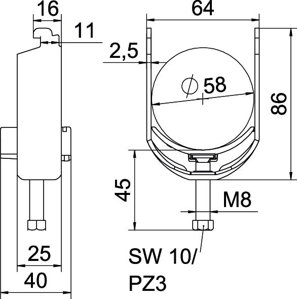 Aggiunta materiale Alluminio Aggiunta superficie non trattato Altezza 86 mm Capacità D max 58 mm Capacità D min. 52 mm Con controcoppa no Con coppa in plastica sì Dimensione H 86 mm Dimensione 52-58mm Dimensione A 25 mm Dimensione B 64 mm Dimensione C 40 mm Dimensione G (mm) M8 Dimensione L 45 mm Dimensione t 2,5 mm Filettatura M8 Impronta CO2 (GWP) dalla culla al cancello 0,5586 kg CO₂e / 1 Pezzo Larghezza 64 mm Larghezza asola 10 mm Lunghezza 25 mm Lunghezza esterna 40 mm Materiale Alluminio Materiale della coppa Plastica Max. Coppia di serraggio 2 Nm Modalità di montaggio Profilati Numero dei cavi/tubi 1 per diametro tubo max 58 mm per diametro tubo min. 52 mm per profilato portacavi con apertura asola (con intervallo) max 12 mm per profilato portacavi con apertura asola (con intervallo) min. 11 mm Priva di alogeni sì Qualità del materiale della coppa Polipropilene Spessore lamiera 2,5 mm - Tutti i tipi