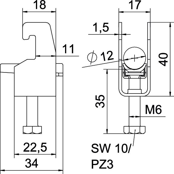 Aggiunta materiale Acciaio inossidabile Aggiunta superficie non trattato Altezza 40 mm Capacità D max 12 mm Capacità D min. 8 mm Con controcoppa no Con coppa in metallo no Con coppa in plastica sì Dimensione H 40 mm Dimensione 08-12mm Dimensione A 22,5 mm Dimensione B 17 mm Dimensione C 34 mm Dimensione G (mm) M6 Dimensione L 35 mm Dimensione t 1,5 mm Filettatura M6 Impronta CO2 (GWP) dalla culla al cancello 0,2103 kg CO₂e / 1 Pezzo Larghezza 17 mm Larghezza asola 10 mm Lunghezza 22,5 mm Lunghezza esterna 34 mm Materiale Acciaio, INOX 1.4301 Materiale della coppa Plastica Max. Coppia di serraggio 3 Nm Modalità di montaggio Profilati Numero dei cavi/tubi 1 per diametro tubo max 12 mm per diametro tubo min. 8 mm per profilato portacavi con apertura asola (con intervallo) max 22 mm per profilato portacavi con apertura asola (con intervallo) min. 18 mm Priva di alogeni sì Qualità del materiale della coppa Polipropilene Spessore lamiera 1,5 mm Super- ficie non trattato, ulteriore trattamento - Tutti i tipi
