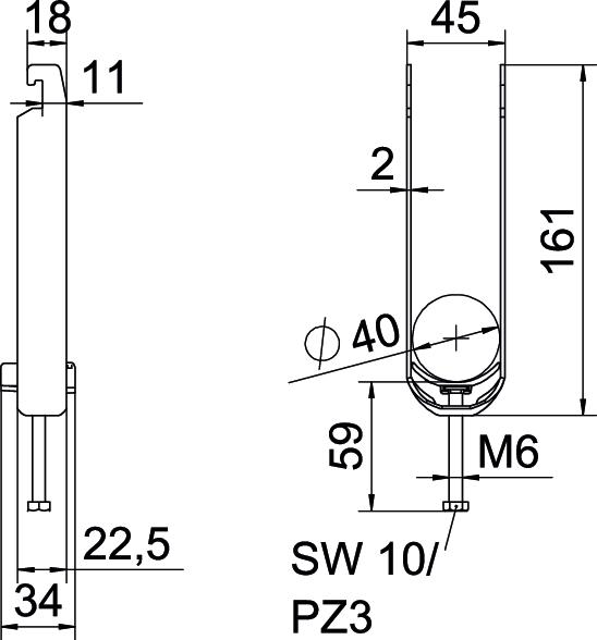 Aggiunta materiale Acciaio Aggiunta superficie zincato a caldo Altezza 161 mm Capacità D max 40 mm Capacità D min. 34 mm Con controcoppa no Con coppa in plastica sì Dimensione H 161 mm Dimensione 34-40mm Dimensione A 22,5 mm Dimensione B 45 mm Dimensione C 34 mm Dimensione G (mm) M6 Dimensione L 59 mm Dimensione t 2 mm Filettatura M6 Impronta CO2 (GWP) dalla culla al cancello 0,3624 kg CO₂e / 1 Pezzo Larghezza 45 mm Larghezza asola 10 mm Lunghezza 22,5 mm Lunghezza esterna 34 mm Materiale Acciaio Materiale della coppa Plastica Max. Coppia di serraggio 3 Nm Modalità di montaggio Profilati Numero dei cavi/tubi 3 per diametro tubo max 40 mm per diametro tubo min. 34 mm per profilato portacavi con apertura asola (con intervallo) max 22 mm per profilato portacavi con apertura asola (con intervallo) min. 18 mm Priva di alogeni sì Qualità del materiale della coppa Polipropilene Spessore lamiera 2 mm Super- ficie zincato a caldo per immersione - Tutti i tipi