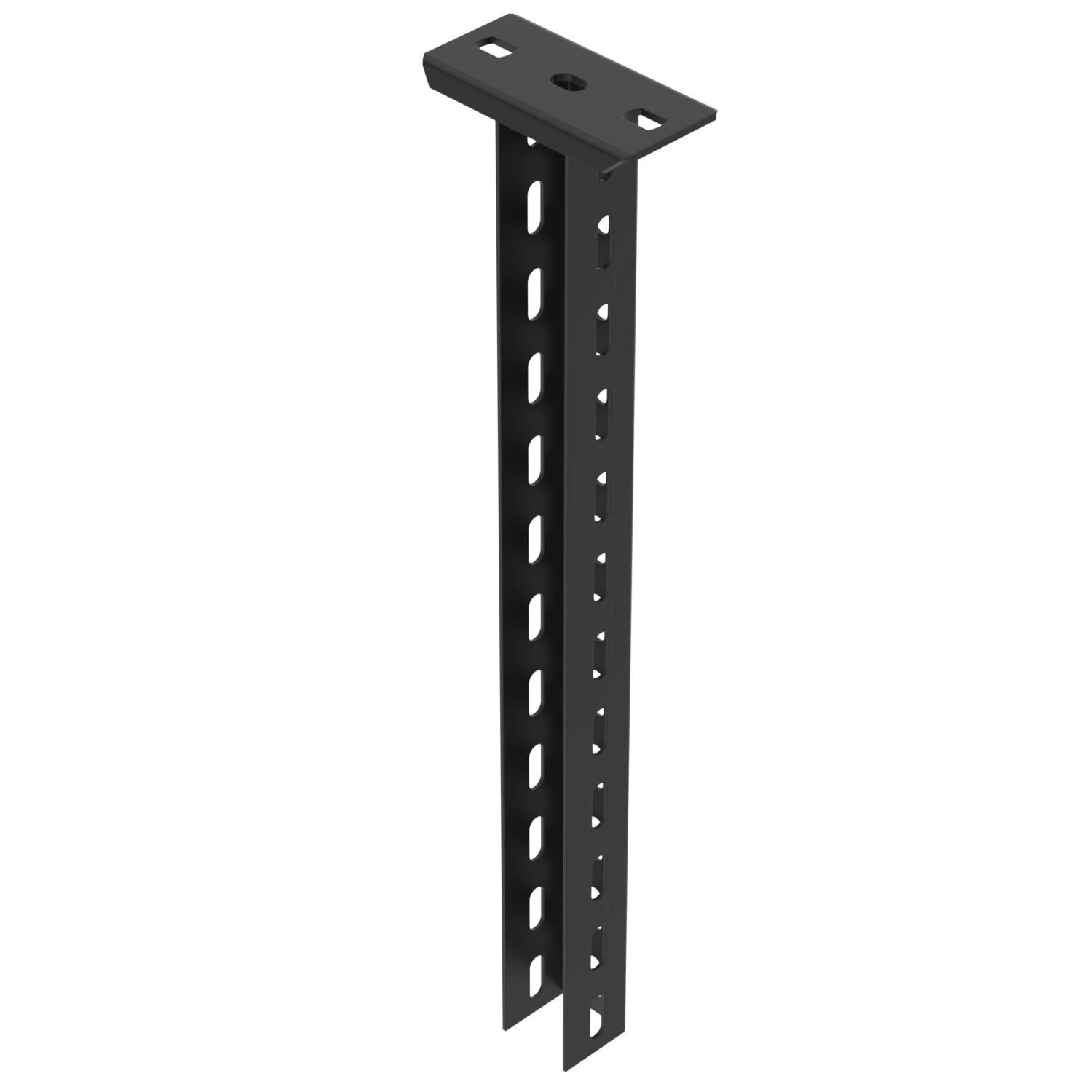 Descrizione prodottoSuspended support made from U profile with welded-on head plate, perforated to 3 sides, for the creation of support constructions for cable trays. Suitable for mounting on horizontal concrete ceilings and steel supports. Wall and support bracket can be mounted on both sides of the U suspended support. Spacer DSK to insert, from bracket width 400 mm or when mounting the bracket on the end of the suspended support. With black powder coating.