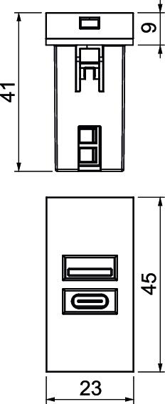 Descrizione prodottoUSB charging device with USB Type-A/-C, for charging one mobile device for indoor application, maximum charging current 1x 2100 mA.