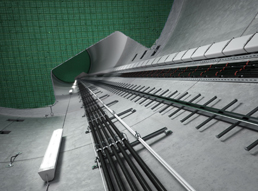 I sistemi di passerelle a traversini rappresentano la soluzione migliore per la distribuzione verticale. Un'altra possibilità è quella di effettuare la posa direttamente a parete. In questo caso, il sistema viene fissato direttamente alla parete o a putrella, e tramite l'utilizzo di staffe reggicavo, i conduttori vengono poi fissati ai pioli della passerella.