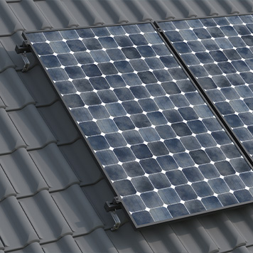La maggior parte degli impianti su tetti a falde viene montata esternamente su un tetto già esistente. In questo caso i moduli fotovoltaici vengono applicati direttamente sul tetto tramite appositi ganci. Il gancio da tetto, infatti, viene fissato alla struttura del tetto e funge da supporto del profilato di montaggio per l'alloggiamento del morsetto del modulo.