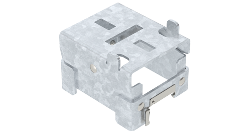 - Foro oblungo orizzontale per il morsetto universale come fissaggio standard oppure foro oblungo verticale nel caso un singolo piedino di montaggio venga posizionato come supporto intermedio